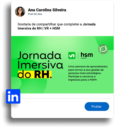 Compartilhe sua jornada de aprendizado no LinkedIn e fortaleça sua imagem como um profissional atualizado e em constante evolução.